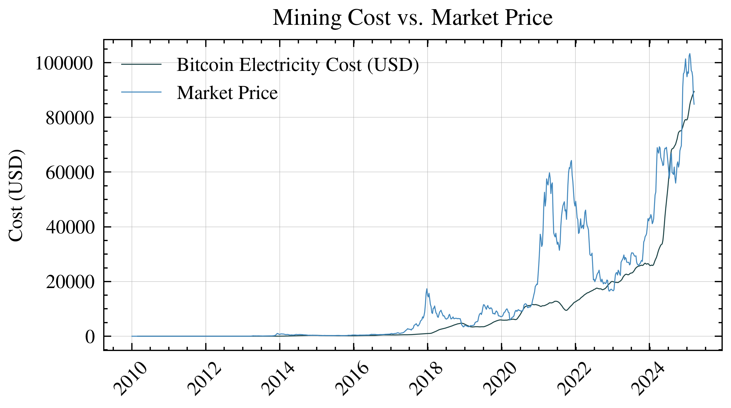 By utilizing electricity consumption as a fundamental physical metric, we establish a concrete basis for evaluating Bitcoin’s intrinsic value. This approach allows us to explore how energy market fluctuations and physical constraints could influence future valuations, providing a clearer picture of the sustainability and economic viability of Bitcoin mining operations.